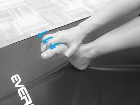 ぐっと足指の付け根まで手の指を押し込む事をお勧めします。