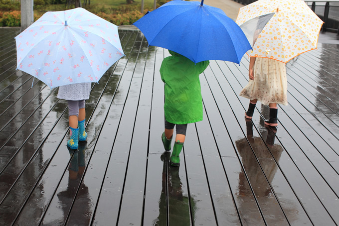 セロトニン分泌の目安とされている明るさが2500ルクスなのですが、雨の日になると、晴れの日の1/100ほどの光の量になってしまいます。ただそういった場合でも1時間以上屋外で過ごすと、セロトニン分泌に有効です。雨の日は外にでるのも億劫ではありますが、寝つきの悪さなどでお悩みの場合などは特に、意識的に外出するようにしたいです。